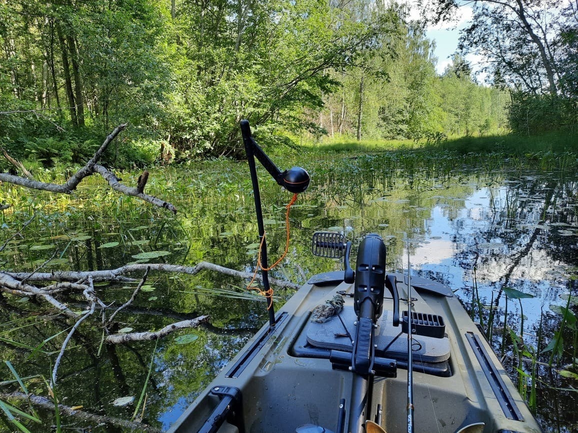 Долгожданный отпуск! Сборы, дорога и, наконец, прекрасная природа озера Велье. С собой — рыболовные снасти и каяк Point65 KingFisher. Я переживал, что на каяке будет неудобно преодолевать большие расстояния, по 5−10 км, но оказался неправ. Педальный привод позволяет с комфортом перемещаться по воде, а главное, что ноги тоже участвуют, освобождая руки от гребли.