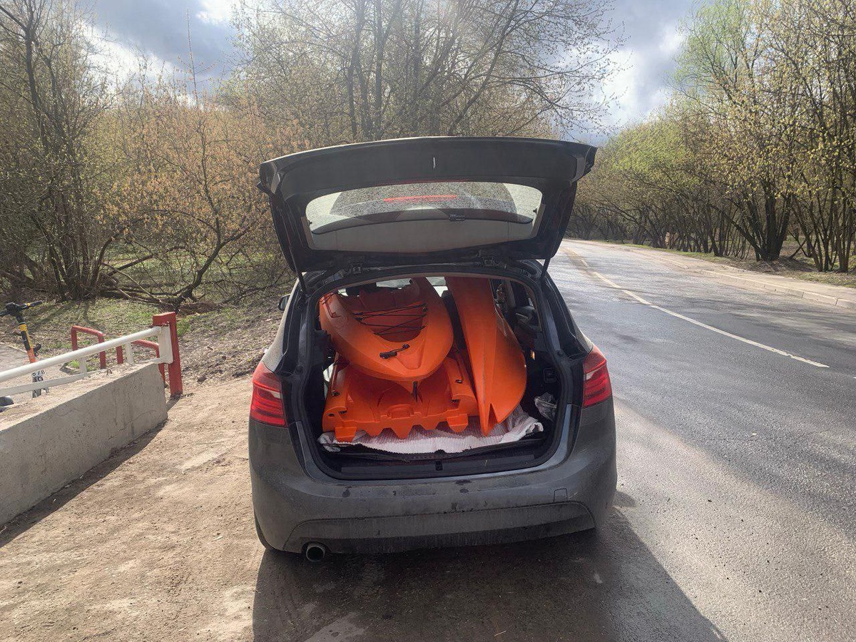 Три модуля двухместного каяка Point65 Tequila! GTX в багажнике легкового авто