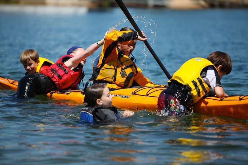 Даже если ребенок не управляет каяком, он должен знать, как правильно сидеть, что делать при раскачивании лодки и как вести себя, если случайно оказался в воде.