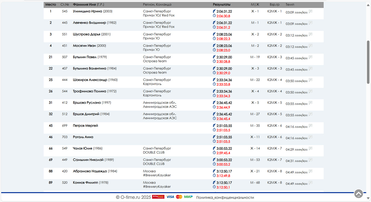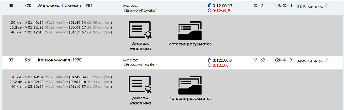 Также хочу поблагодарить компанию «КаякМастер» за предоставленную лодку и поддержку на марафоне. Любой новый каяк для тестов, любой новый опыт, полученный с новым напарником (напарницей), развивает и мотивирует. Надеюсь, статья позволит читателям использовать наш с Надей опыт для своего развития и новых достижений в гребле.