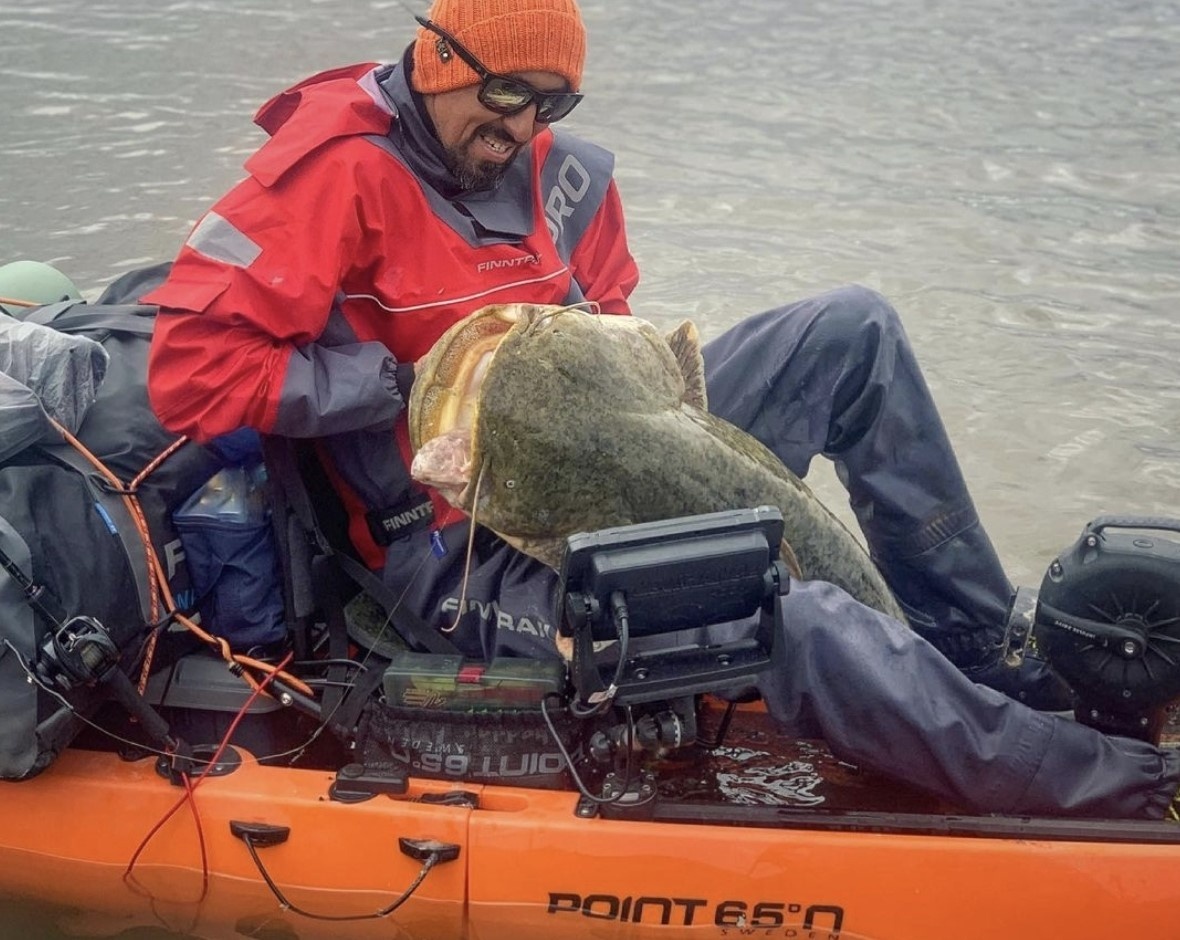 Андрей Старков затащил в каяк Point 65 KingFisher сома Солдатова. Фото: Андрей Старков